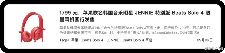 比如此前在国内上架的 JENNIE 联名款 Beats Solo 4,刚上架几分钟就宣布售罄。